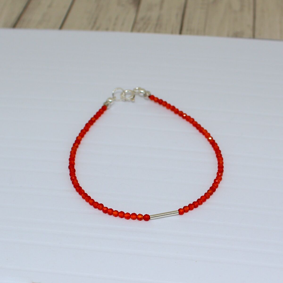 Handmade bracelet with micro faceted Carnelian beads, held on sterling silver plated wire and finished with sterling silver findings.