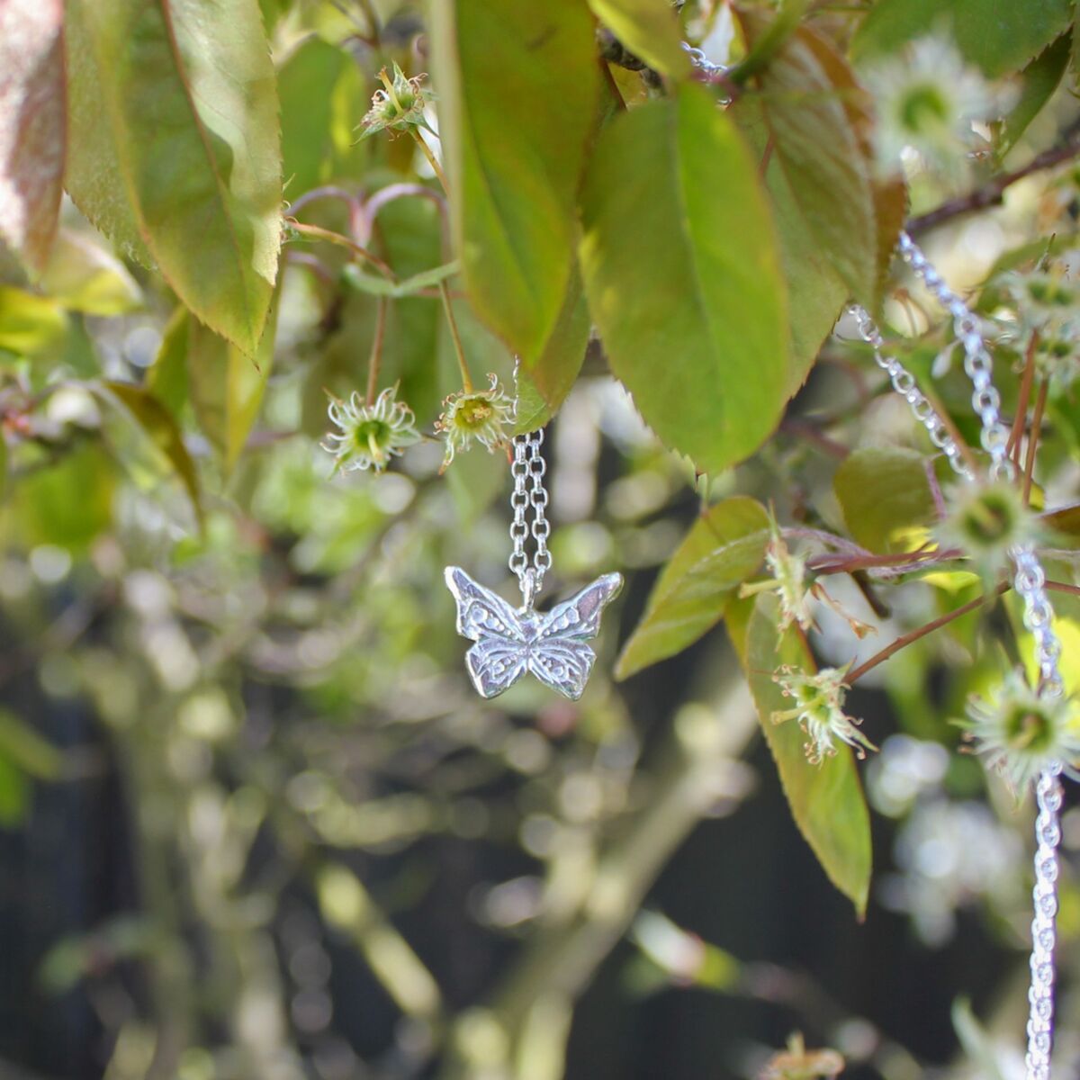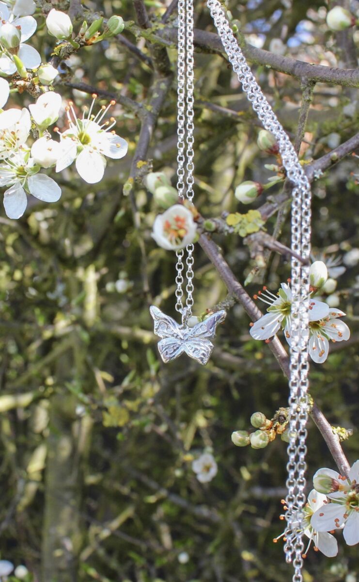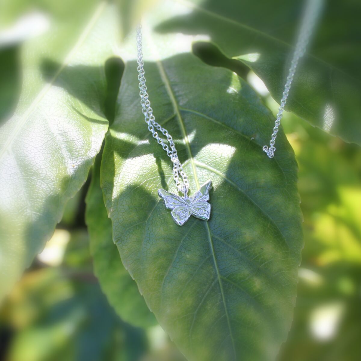 Handmade silver butterfly pendant necklace