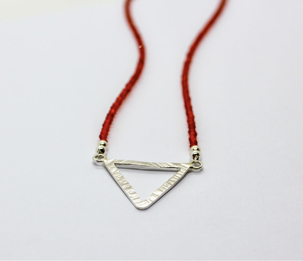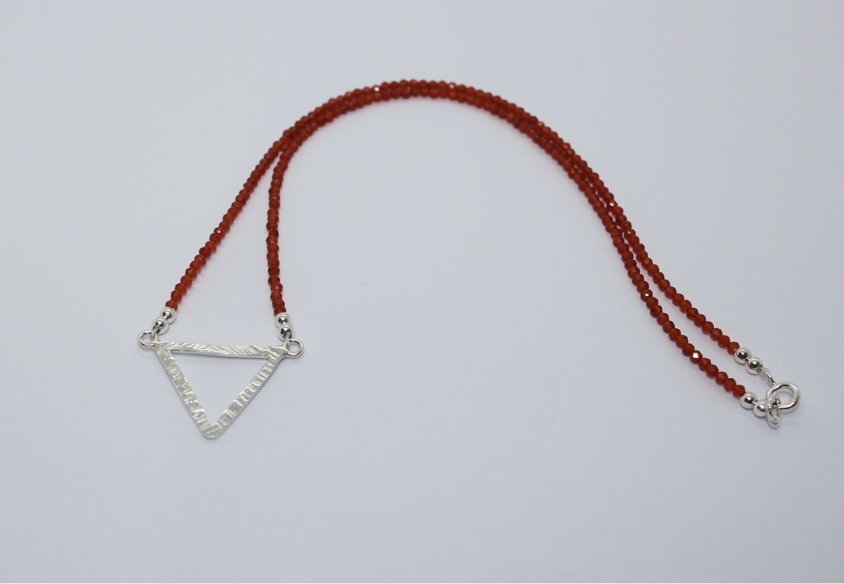 Carnelian beaded necklace with silver triangle pendant listed in: