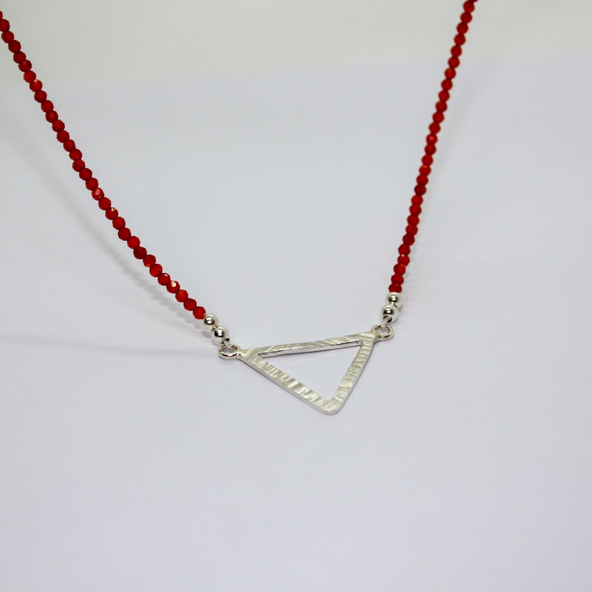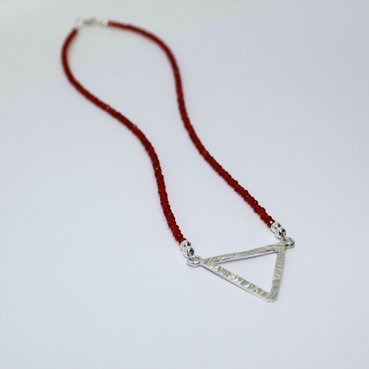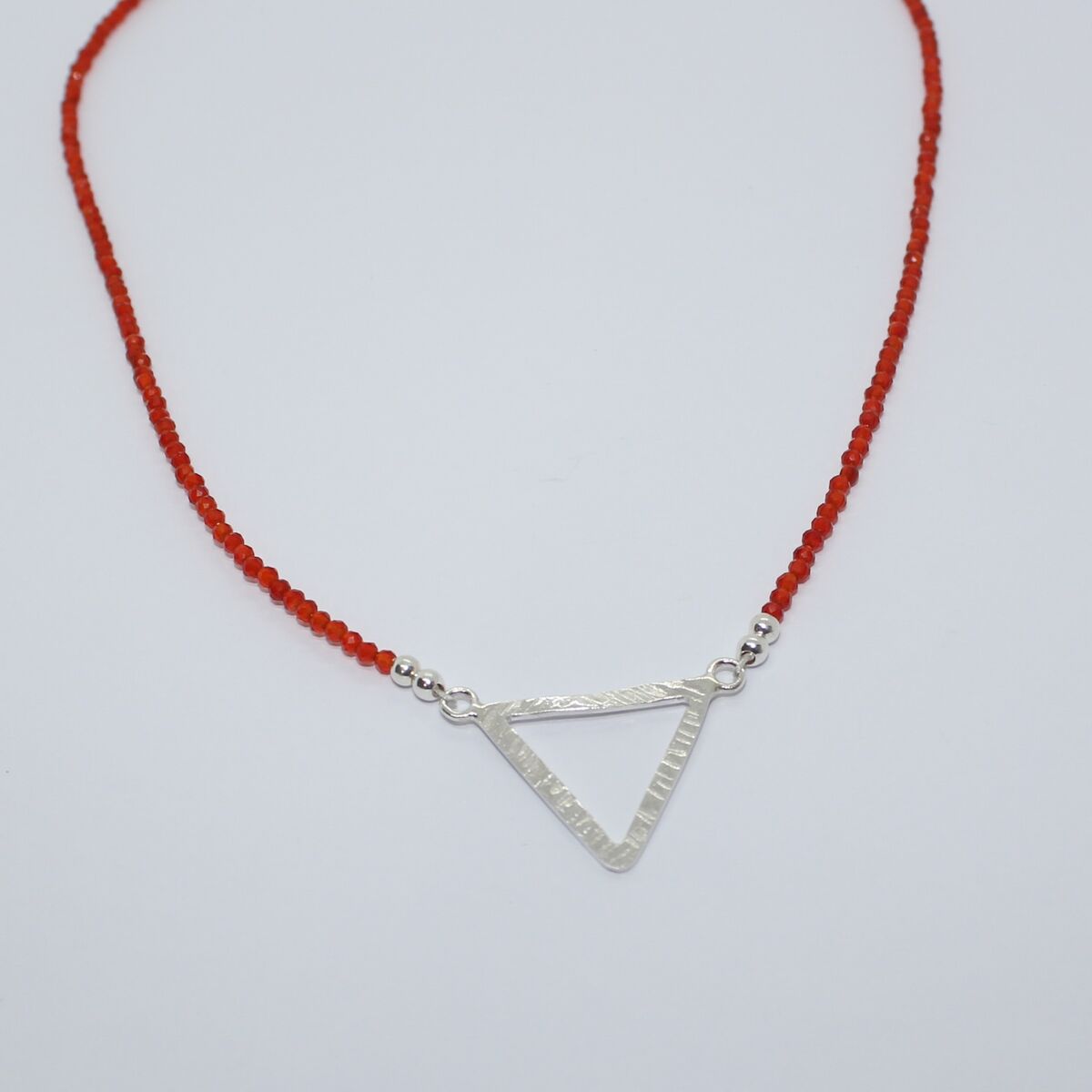 Carnelian beaded necklace with silver triangle pendant